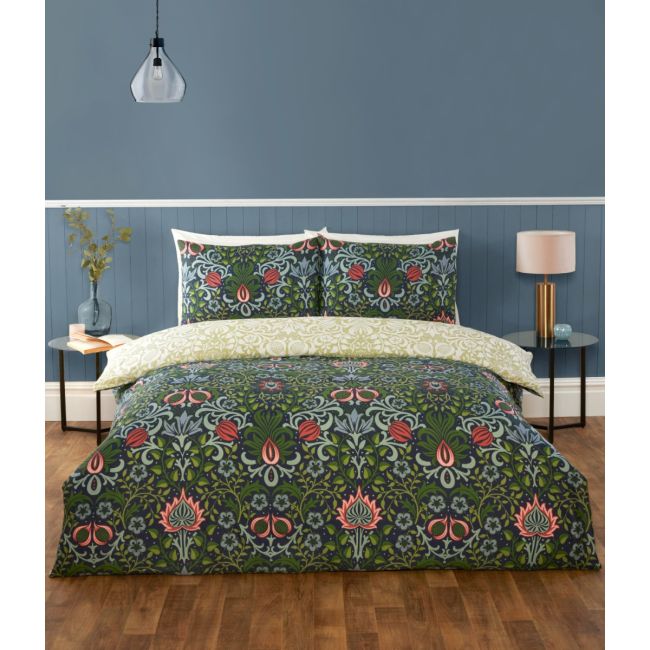 Harnessing the spirit of traditional design and taking inspiration from the Arts and Crafts movement, Heritage Flora is delicately printed and beautifully designed. Fully reversible. Single includes 1 pillowcase, double and king size includes 2 pillowcases. Popper fastening. 100% polyester. Machine washable. Available in Navy or Multi.